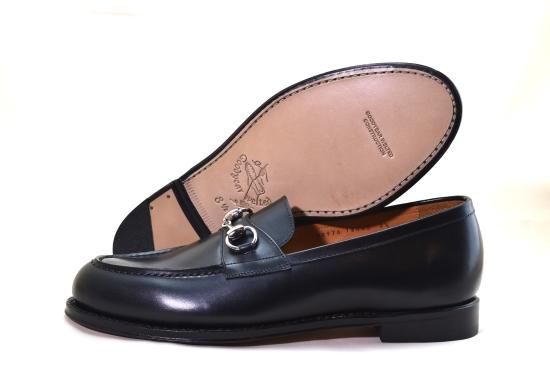 98976はローファー専用のラスト「18045」を使用したビットローファーです。 ミニマルなデザインにシルバーのビットがアクセントになっています。 カジュアルな装いに合わせれば適度に上品な雰囲気を、ドレッシーな装いに合わせれば程よい抜け感を演出してくれる一足。 コーディネートを格上げしてくれるアイテムです。 通気性と足馴染みの良さが魅力のレザーソールにはイタリア製の素材を採用し、エレガントな仕上がりです。